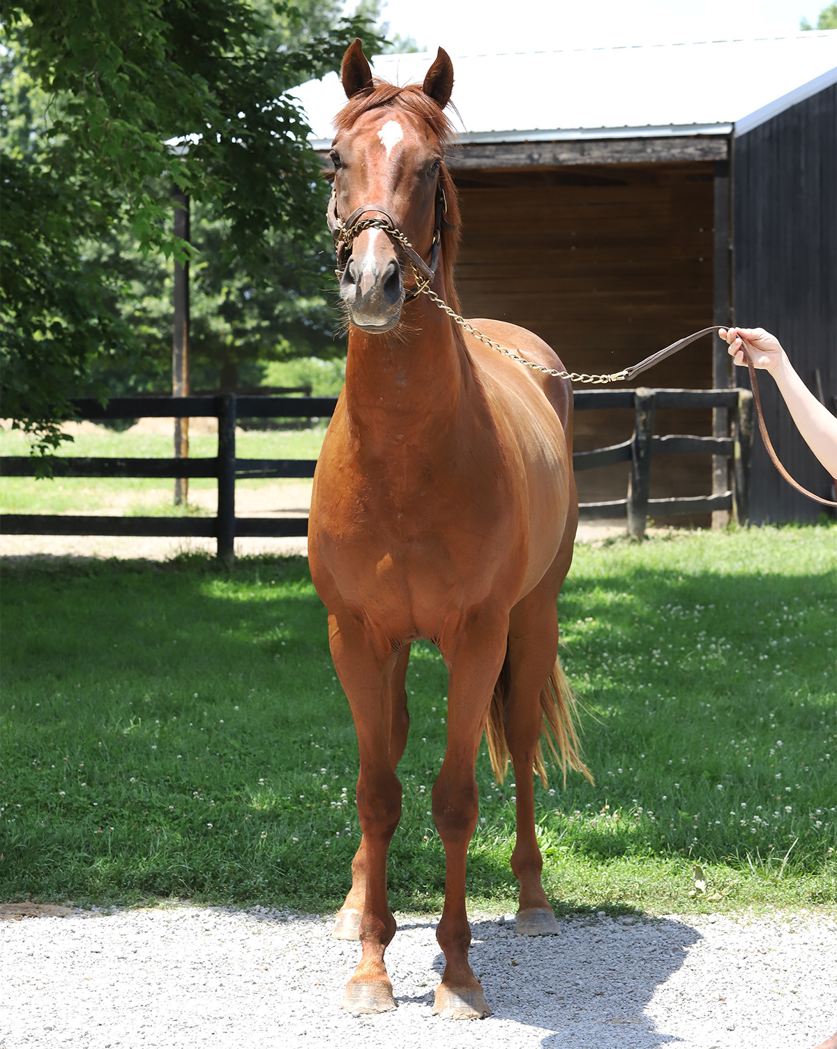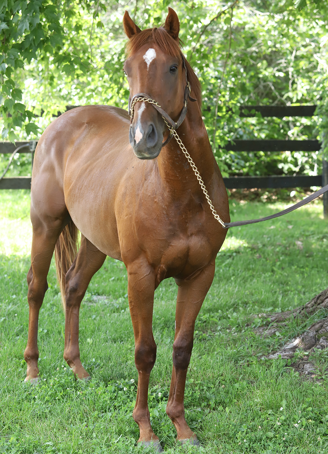 15.3 hands and growing. Not trained for racing due to a sesamoid fracture as a foal. The fracture healed well and he is sound.