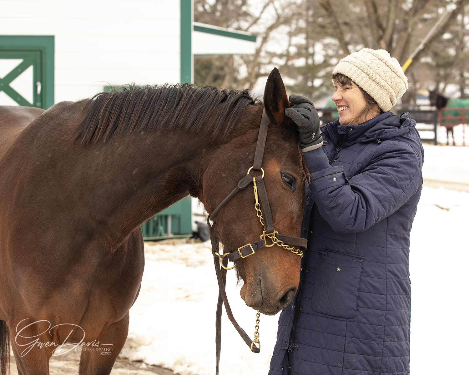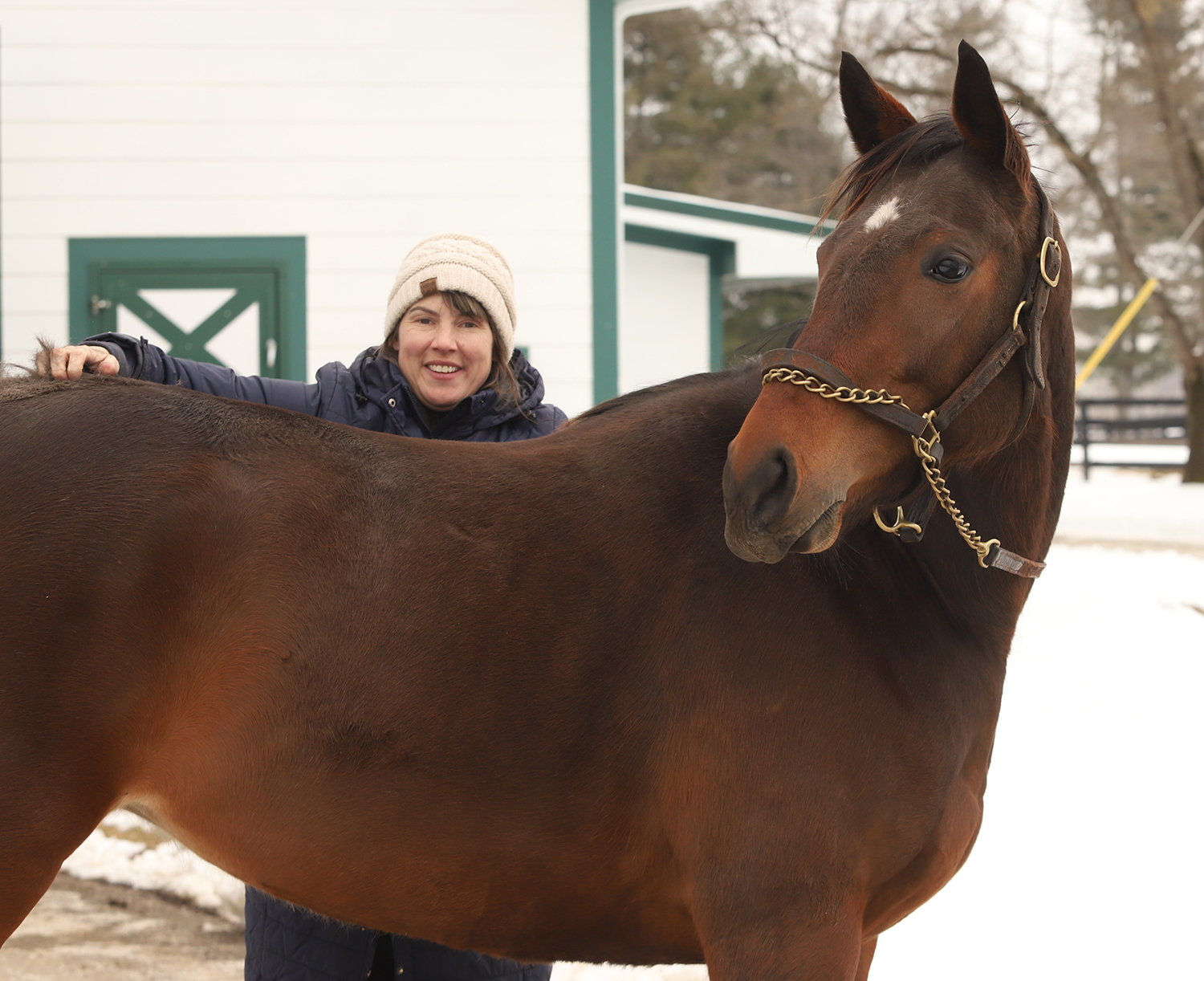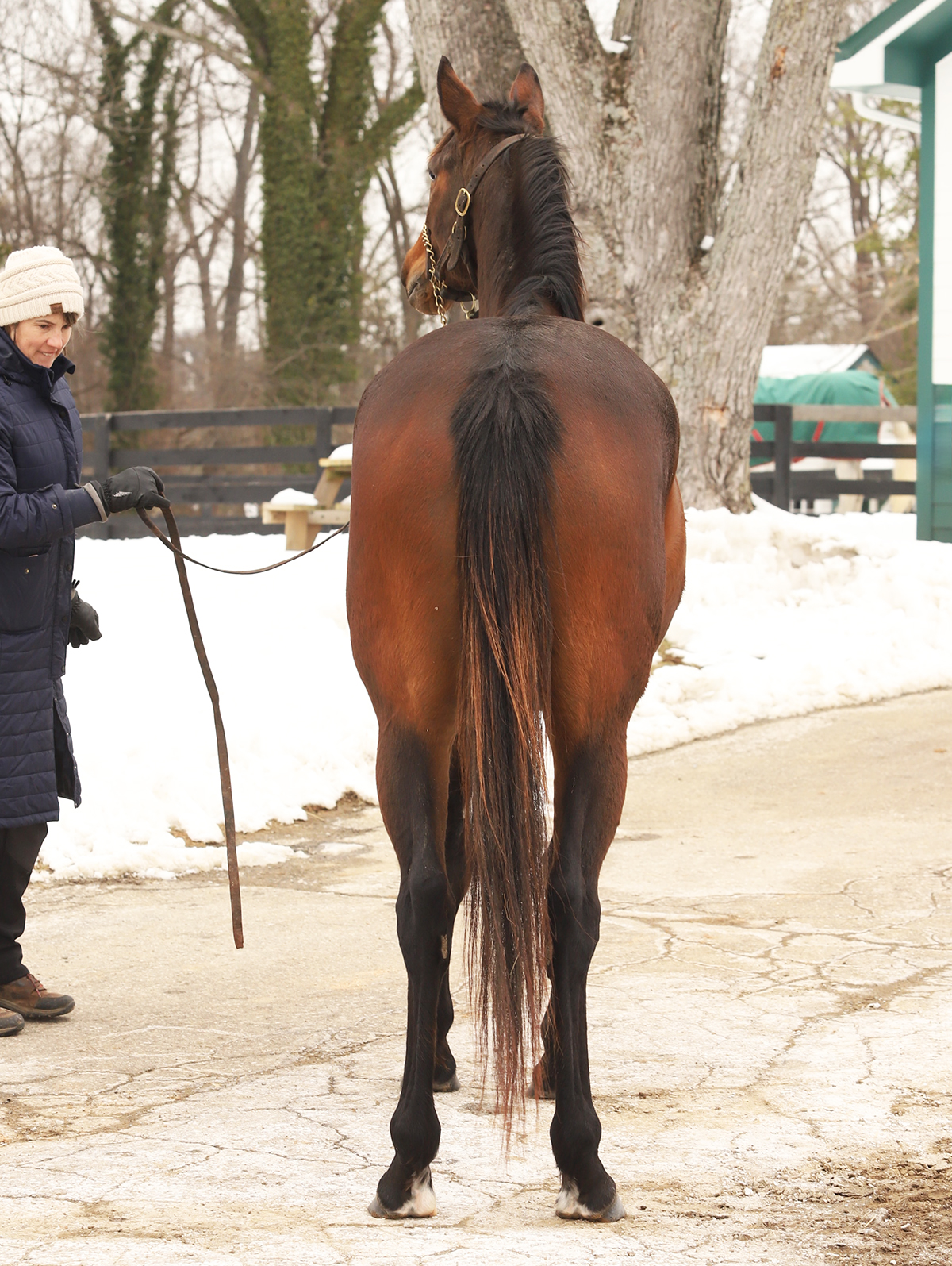 15.3 plus hands. She last raced in March of 2025 and retired sound and no longer competitive. She was bred in 2025 and did not get in foal. We were not given the reason. We are told she has not had any injuries in her past.