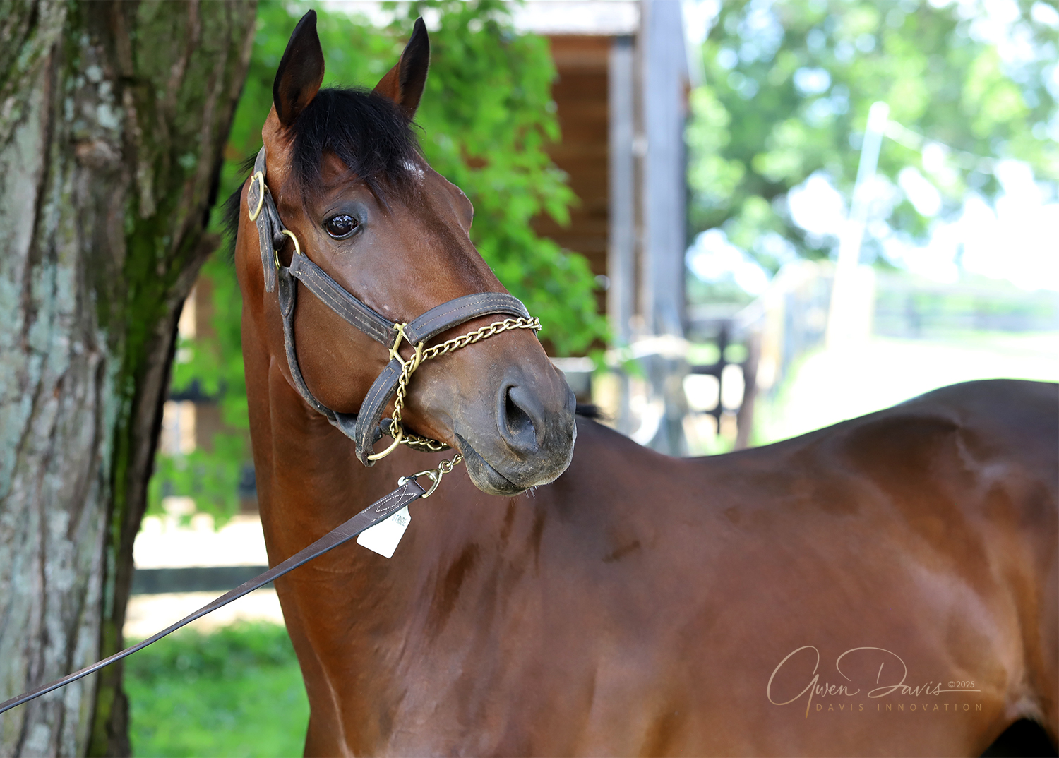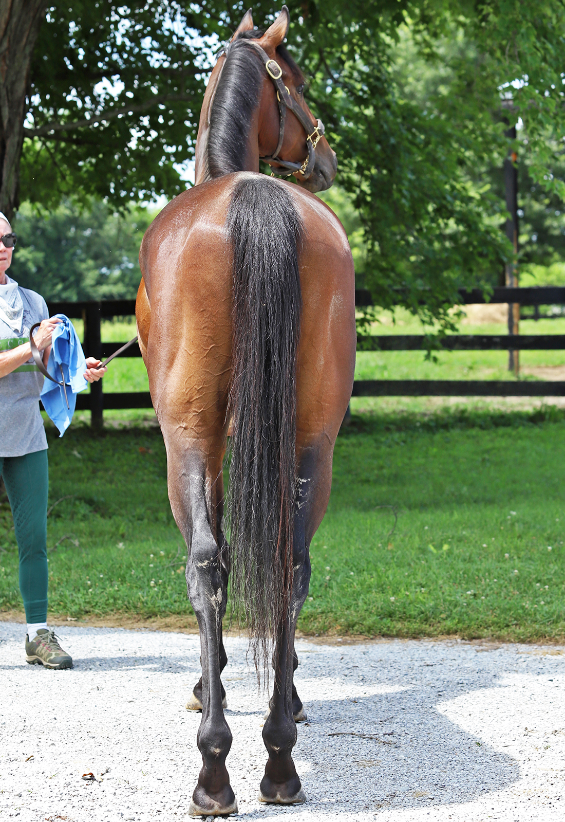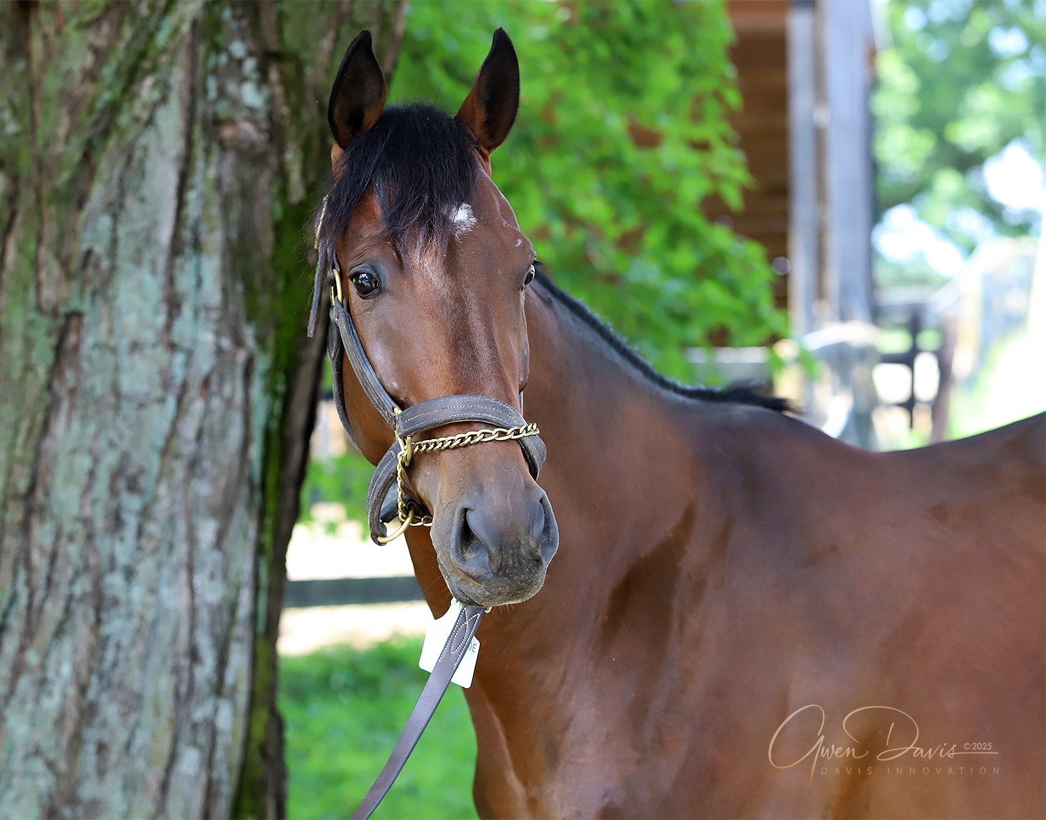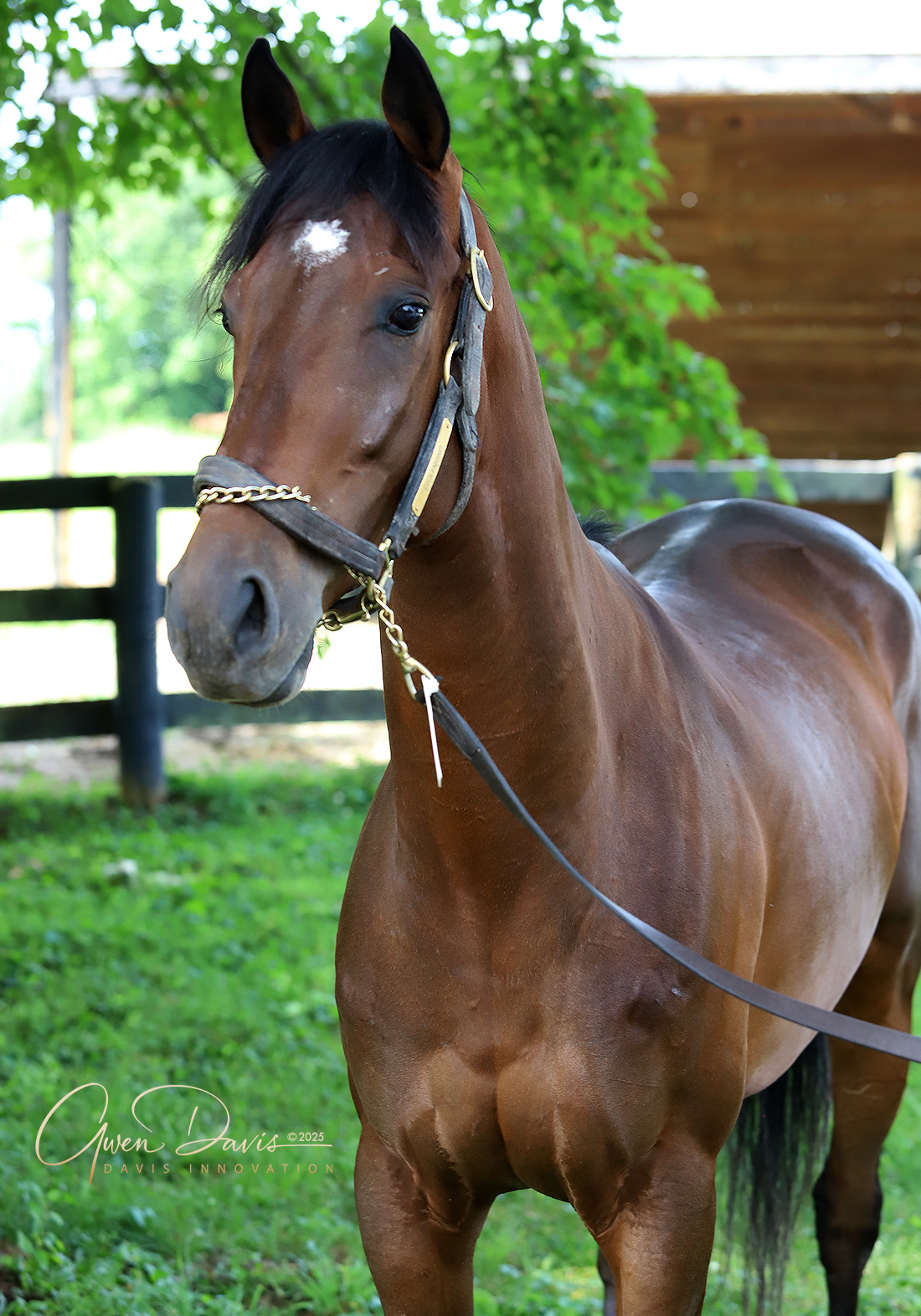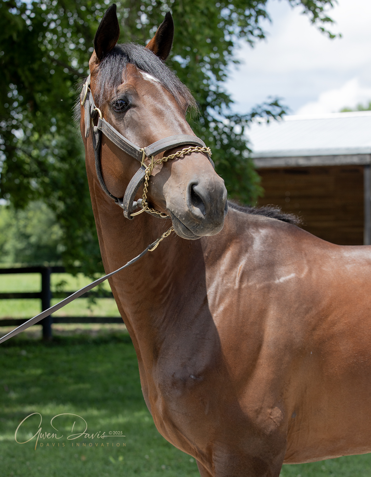 16.1 hands. He never raced and last worked on 10/19/24. He retired with a sesamoid fracture that was surgically repaired. He is now sound and riding well at a walk, trot and canter. He should be suitable for any non-speed competition, with a maximum jump height between 2’3″ and 2’6″.