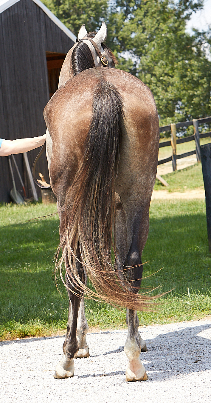 Jam is a lovely mare with a nice pedigree. She settled in well to our farm and has been accepted into our mare herd with no issues. She gets along well with everyone and is respectful of her handlers and riders. She stands well for bathing and grooming.