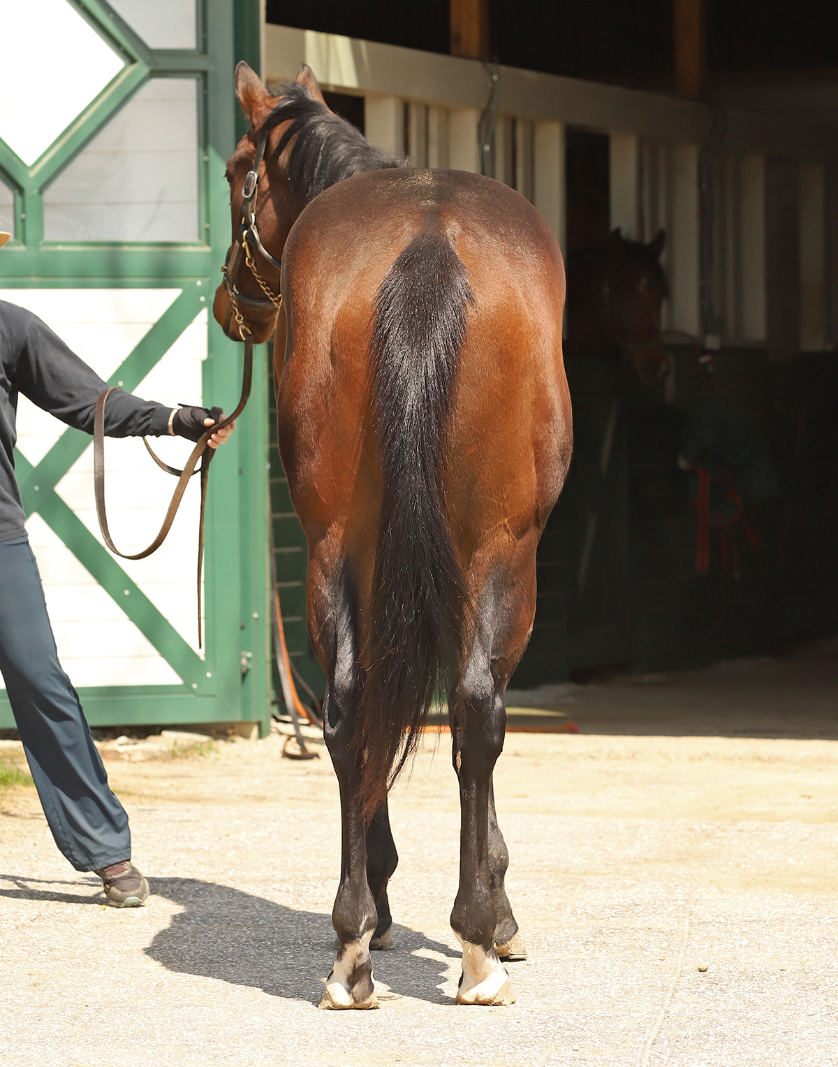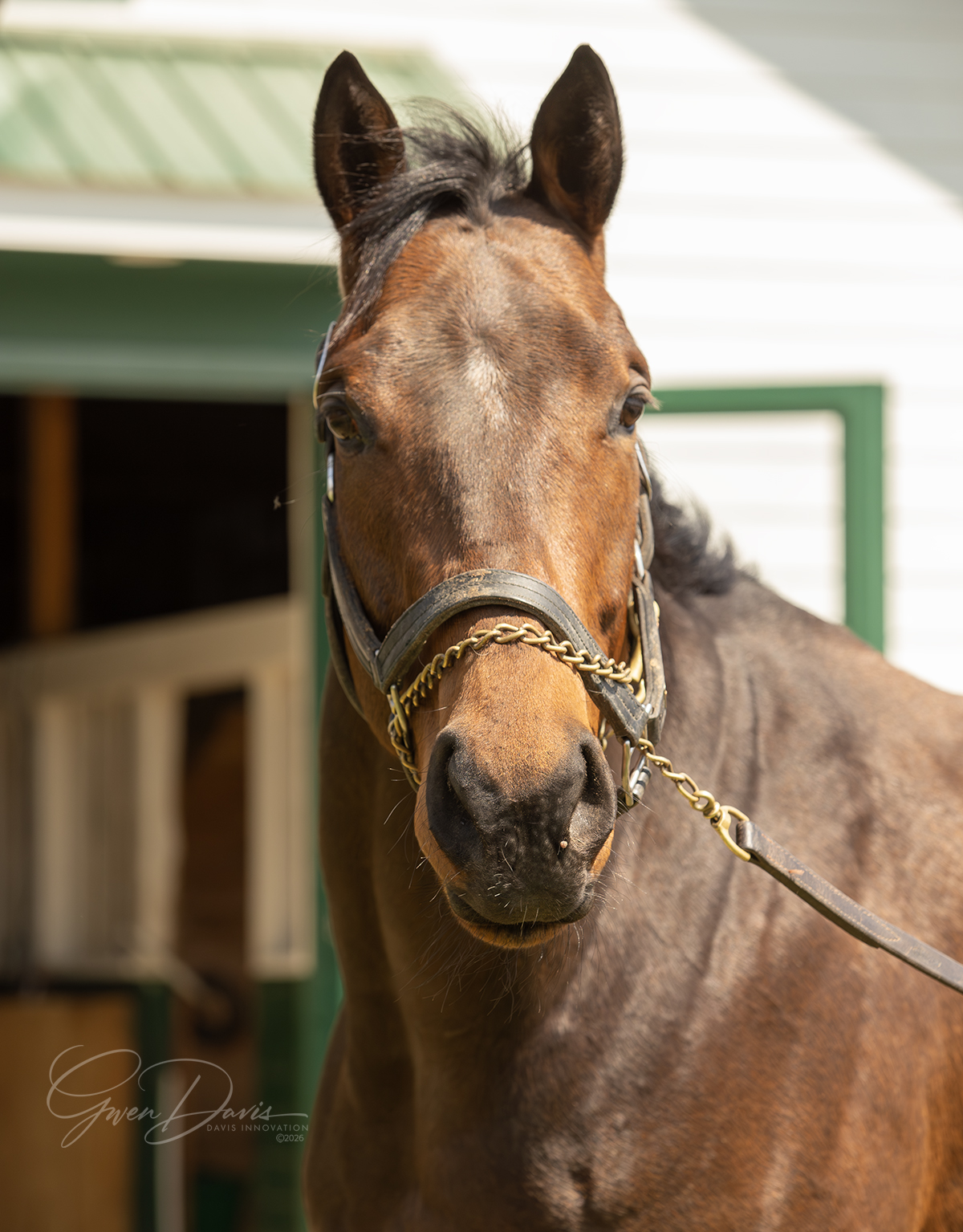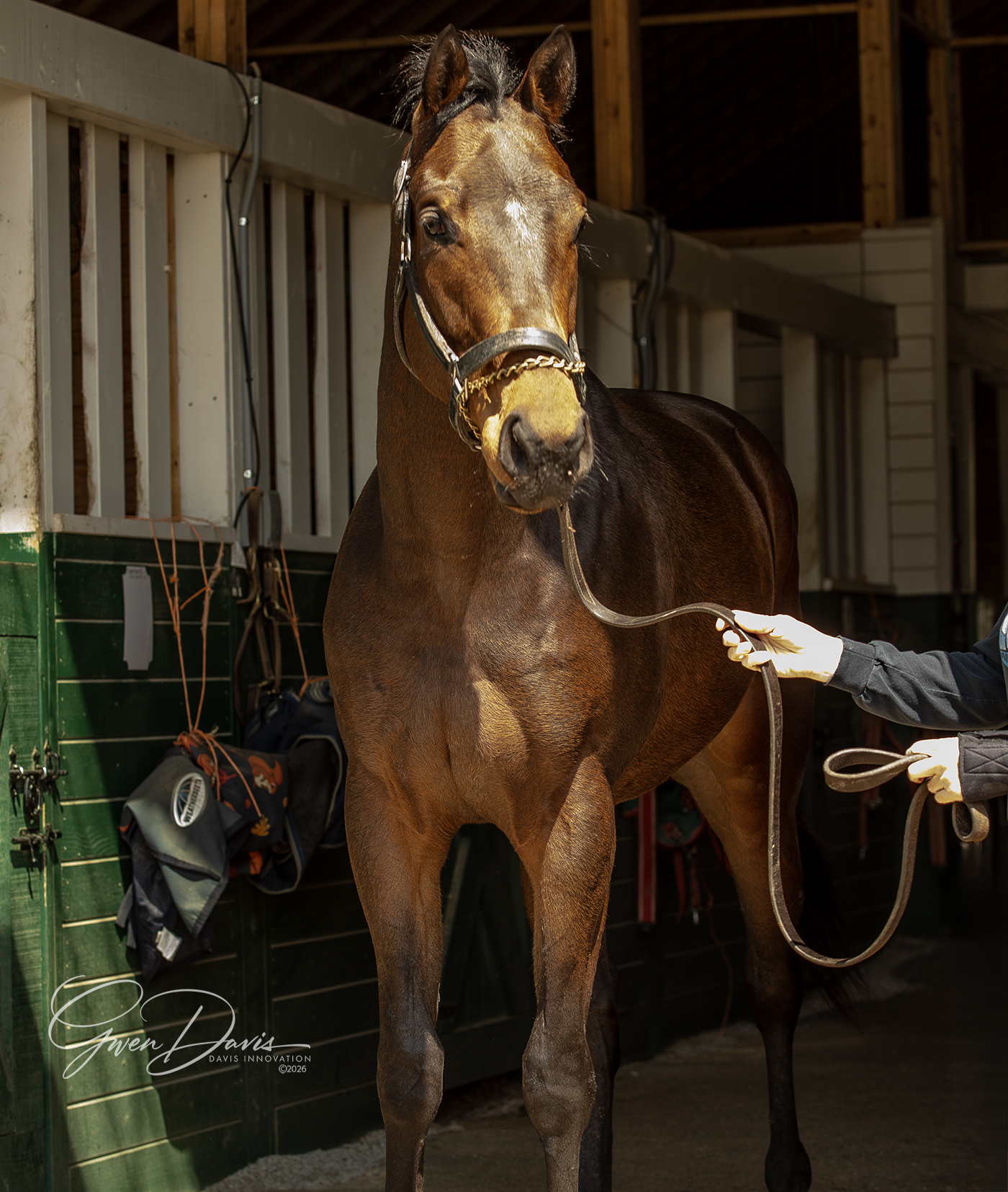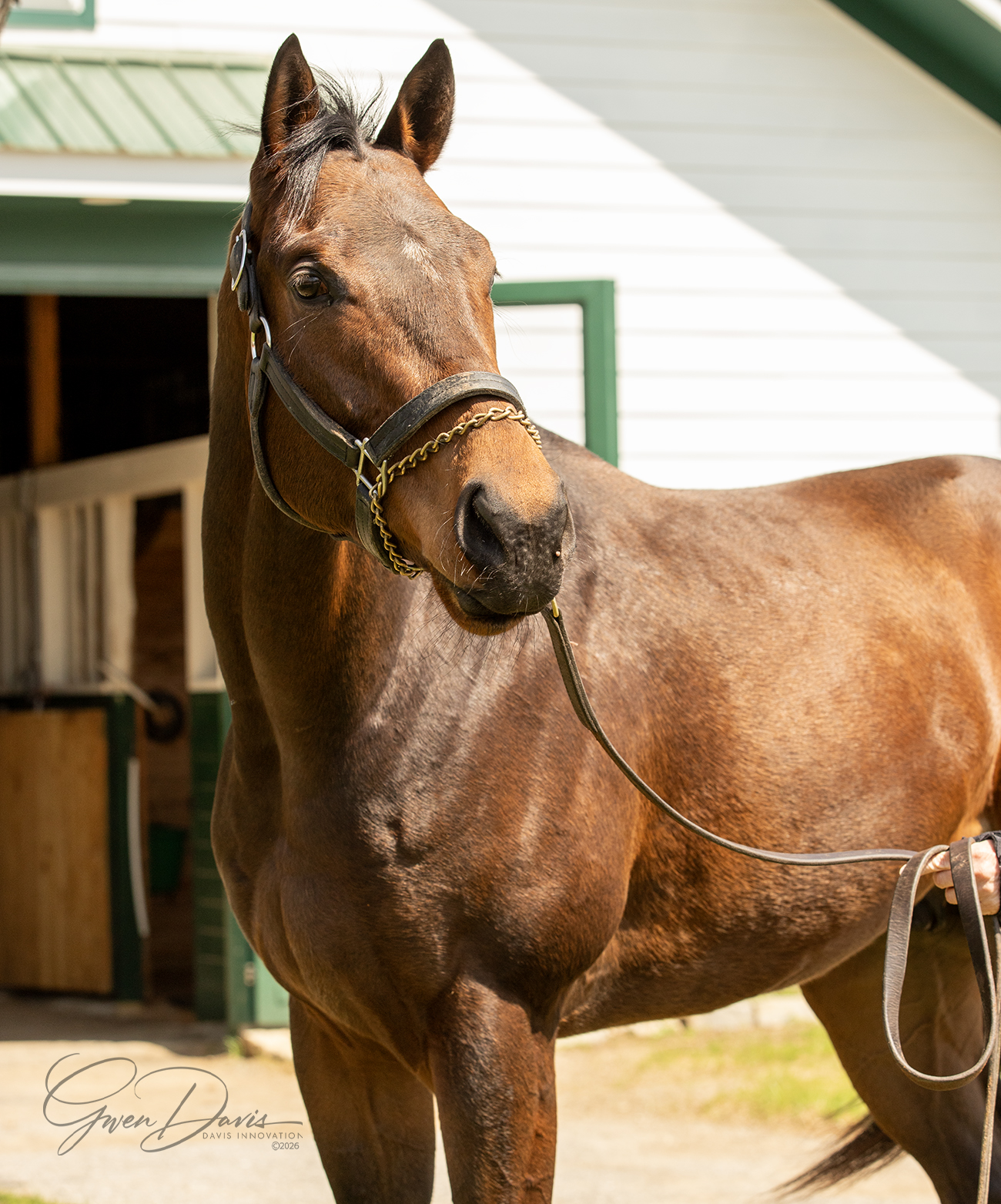 16.3 hands. He last worked on 1/23/26 and retired with a right front sesamoid fracture. He is on round pen turnout until 4/26/26. If sound in early May, he can begin herd turnout with a quiet group of geldings. If he is sound at the walk in May, he can start walking under saddle. He should not do more than a walk until 7/23/26 if he is sound under saddle and sound trotting in the field.