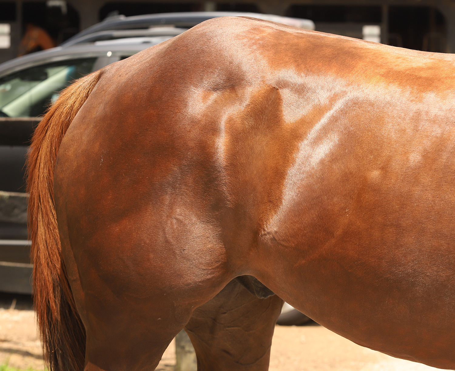 16 hands. He last raced on 5/26/25 and retired sound. He did get an irregular heartbeat when race training. We have several medical evaluations available for an interested adopter. In 2024, he had a left front coffin bone fracture that is no longer an issue. He has a dropped hip but it doesn’t seem to bother him or alter his gait. He rides sound at all gaits.