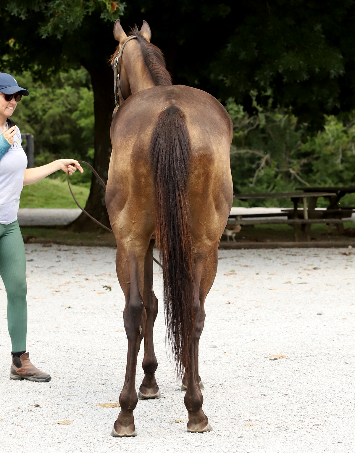 Dancer turns out overnight and is the leader of his herd of gentle geldings. He is happiest in this role – with rougher pasturemates, he will not stand down, and tends to lose weight playing hard instead of grazing. In a quiet group, he eats well and is bossy but kind to his underlings.
