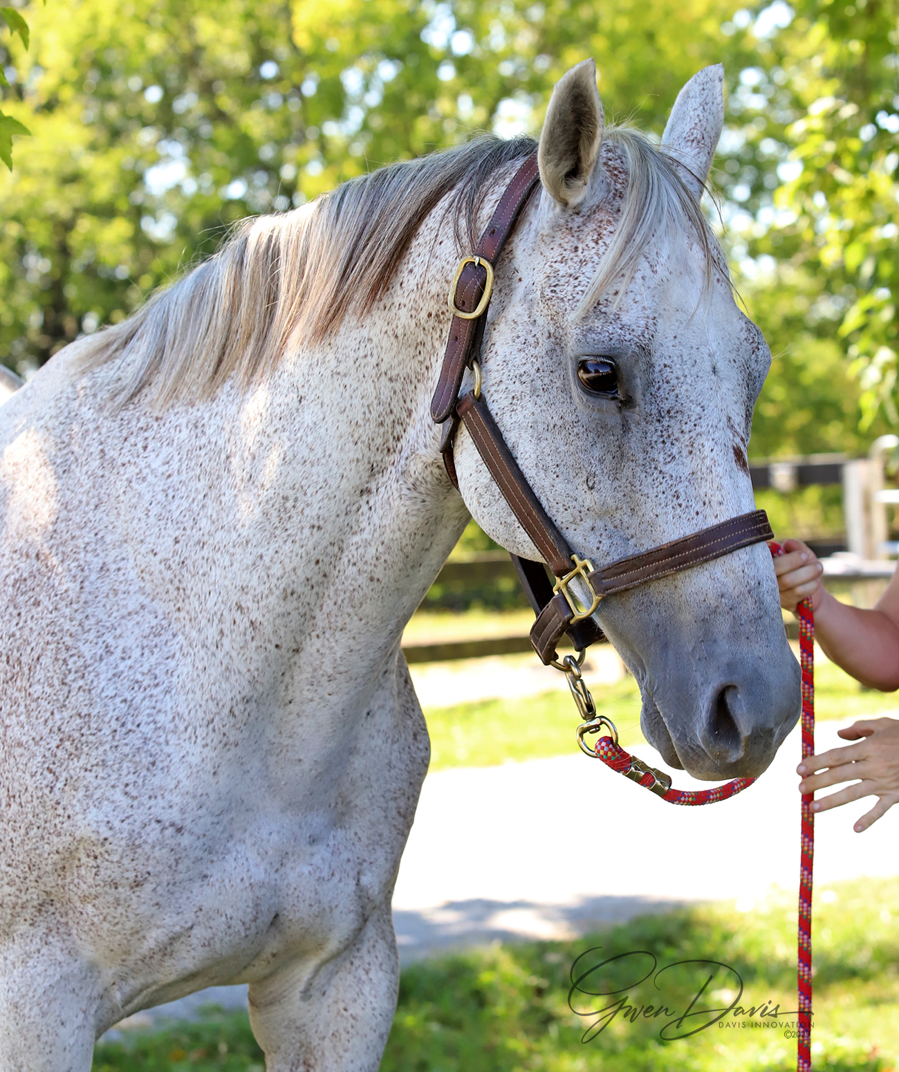 Yes My Love is respectful of her handlers and walks nicely on a lead rope. She stands politely for her grooming and bathing sessions. She may be nervous at first when being tacked up but is easily soothed. She seems to enjoy being with people and can be pet, hugged and fed treats by just about anyone – a quiet and patient mare when in a familiar situation.