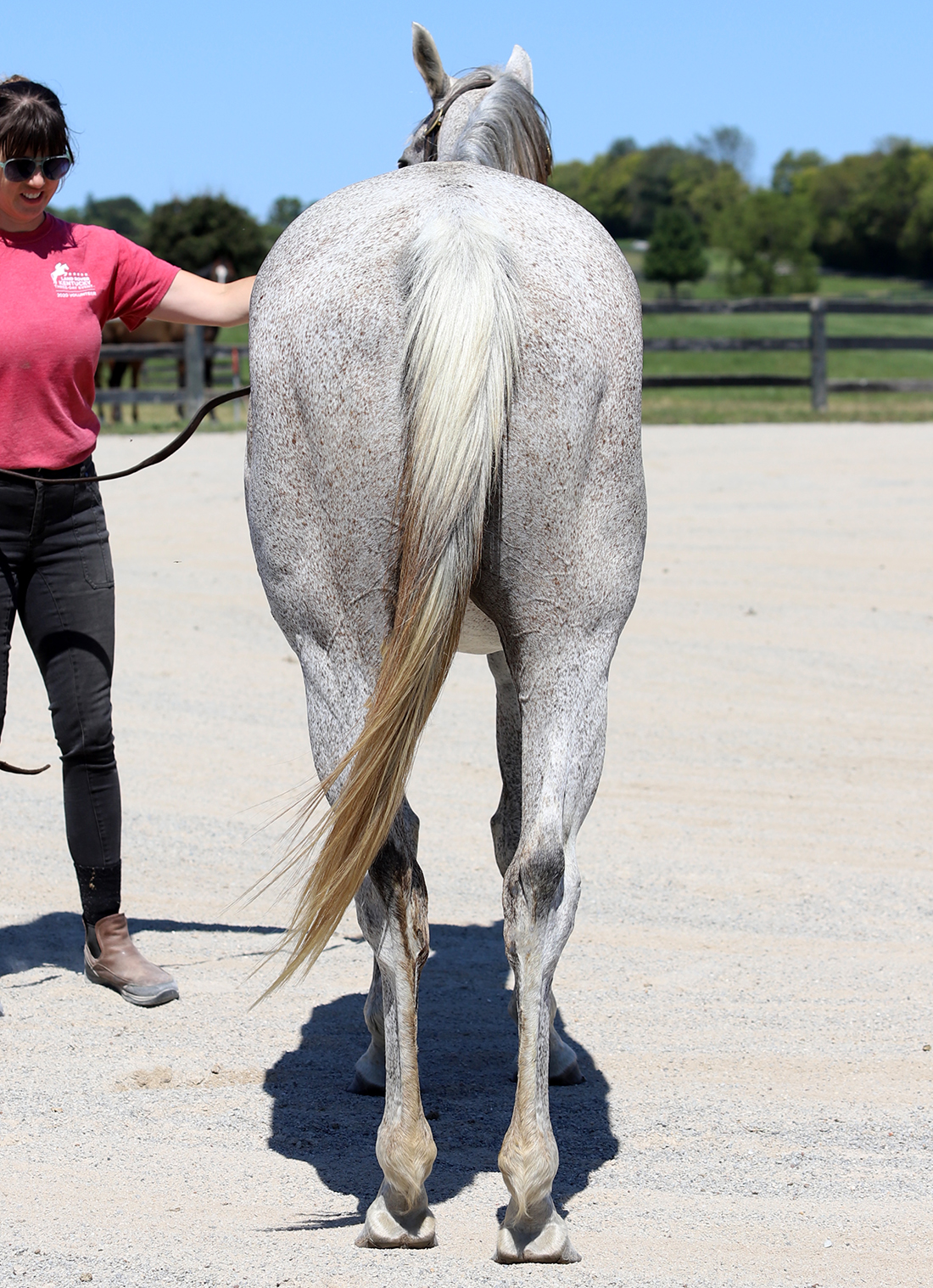 15.2 hands. She last raced in 2014 and retired sound. She spent several years being a successful broodmare with her last foal coming in 2021. She is now looking for her 3rd career. She is eligible for the Retired Racehorse Project Broodmare Division. She does have some arthritis in her left hind.